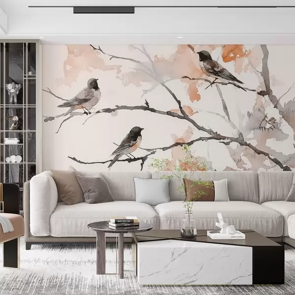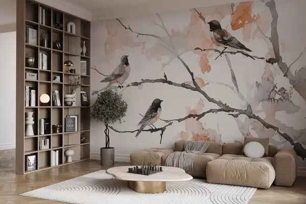 Fotomurales Pájaros en las ramas de los árboles en estilo acuarela Nr. w09064v2