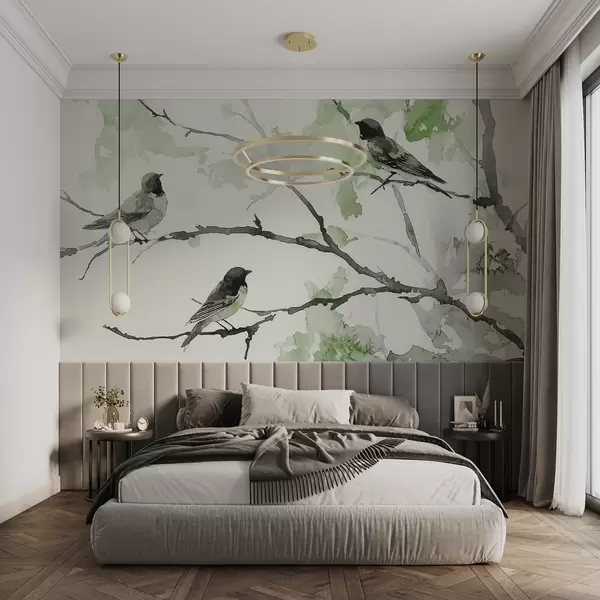 Fotomurales Pájaros en las ramas de los árboles en estilo acuarela Nr. w09064v3