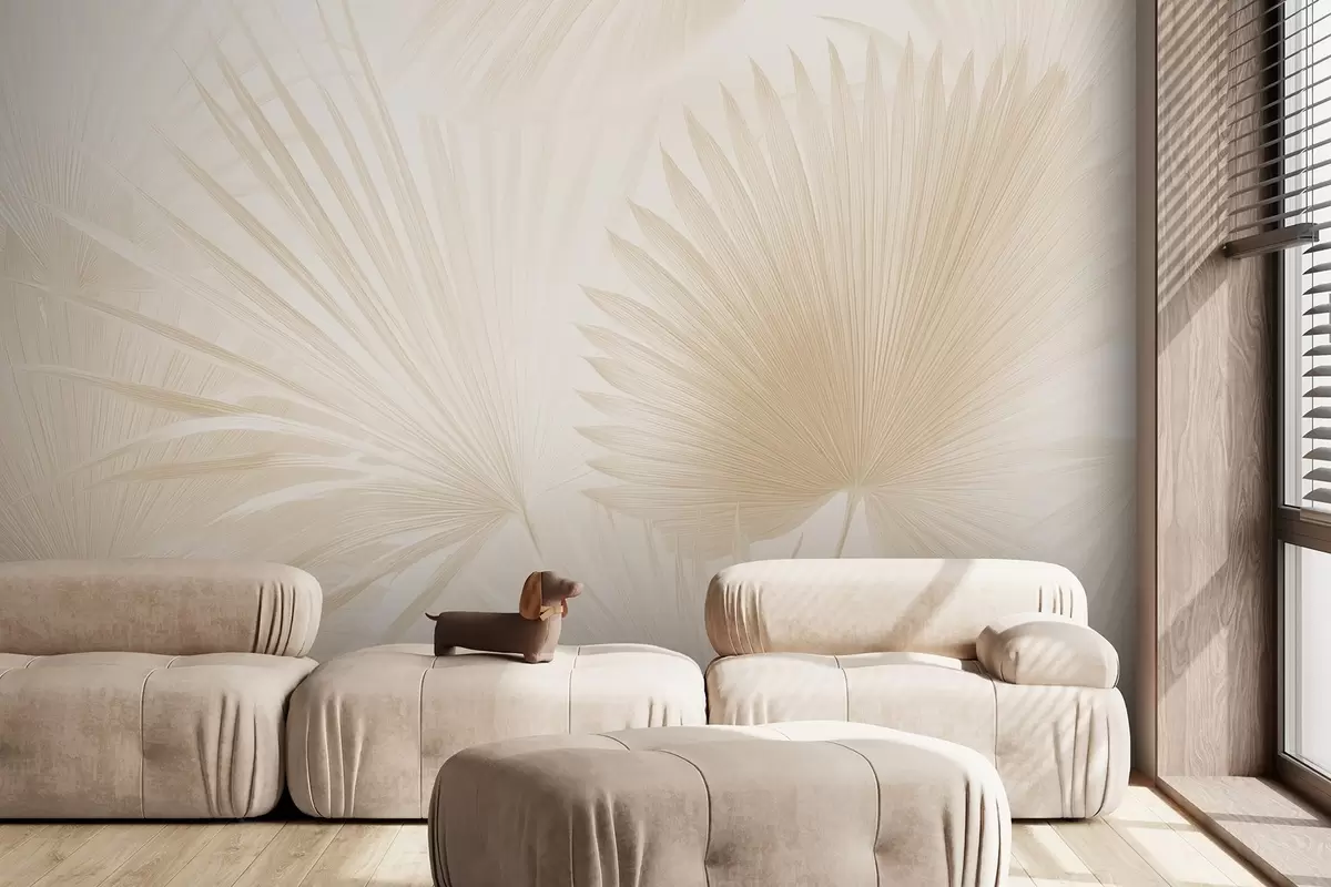 Fotomurales Suaves abanicos de hojas tropicales sobre fondo claro Nr. w09084v1