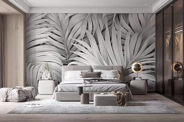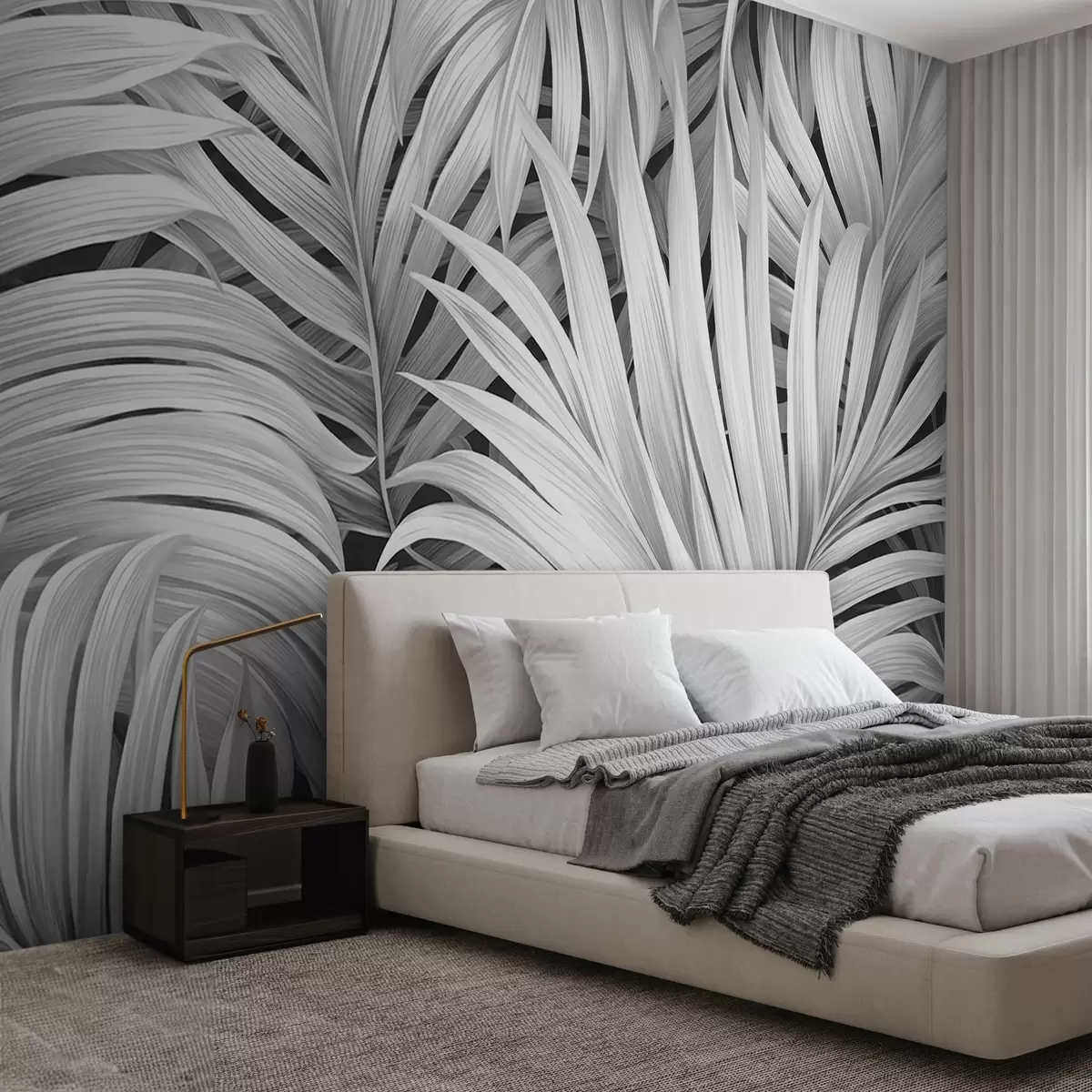 Fotomurales Hojas de palmera tropical con textura monocromática, creando un estampado tropical y botánico Nr. w09145