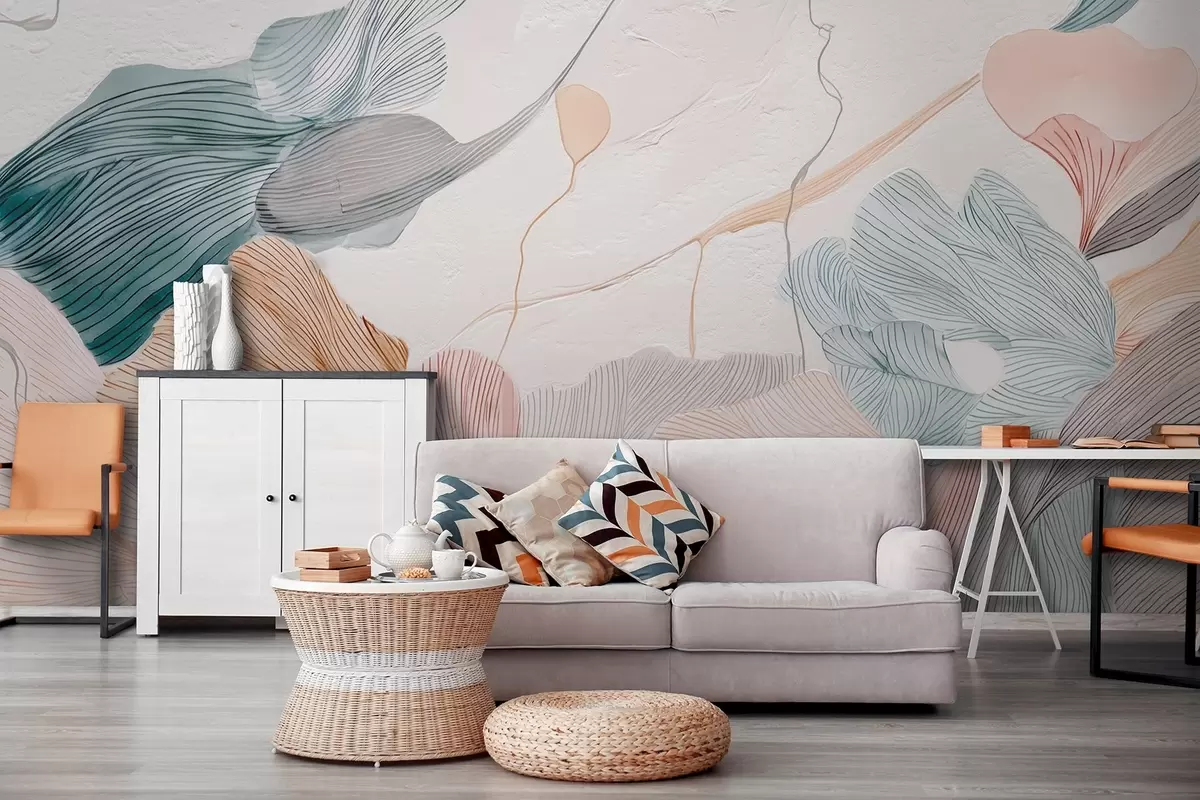 Fotomurales Hojas gráficas abstractas en cálidos tonos pastel Nr. w09222