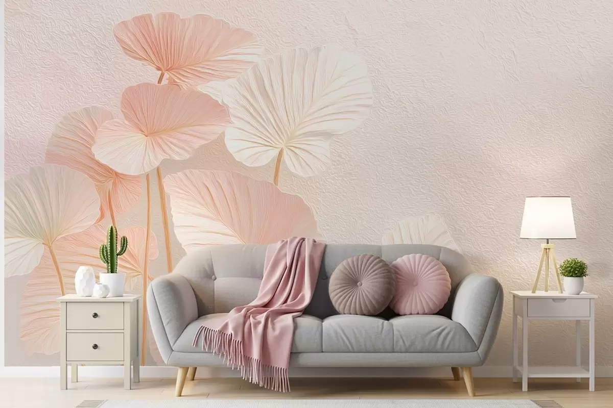 Fotomurales Elegantes hojas tropicales grandes de delicado color rosa Nr. w09252v1