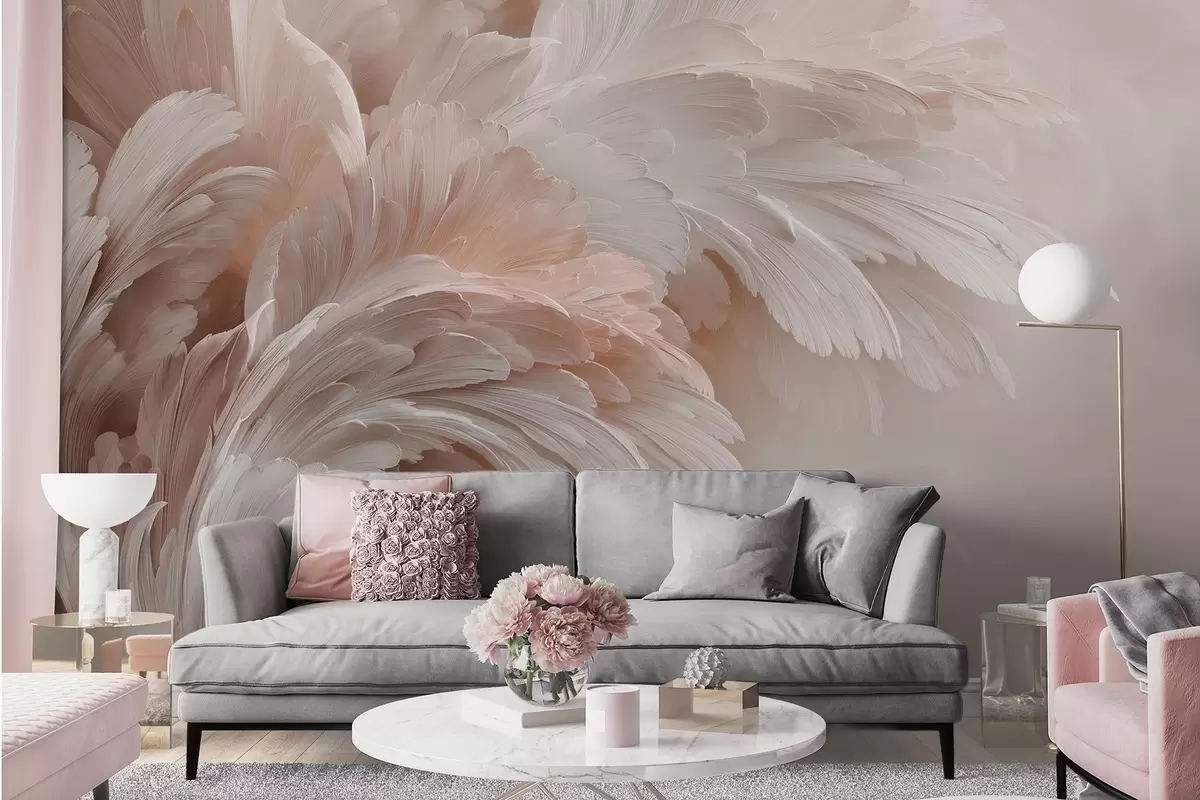Fotomurales Aireadas plumas y pétalos en tonos rosa crema Nr. w09301