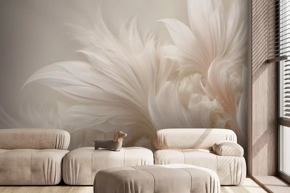 Fotomurales Plumas ingrávidas en tonos crema vainilla Nr. w09302