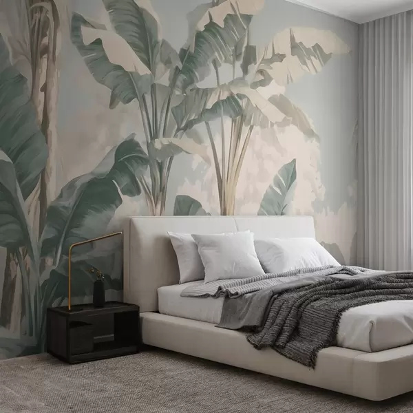 Fotomurales Hojas de plátano tropicales en suaves tonos pastel Nr. w09311