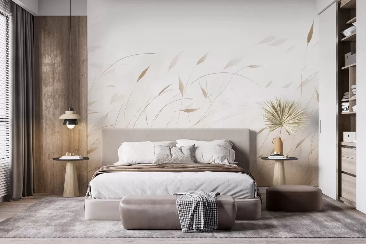 Fotomurales Hierba al viento en estilo acuarela en tonos beige Nr. w09331v1
