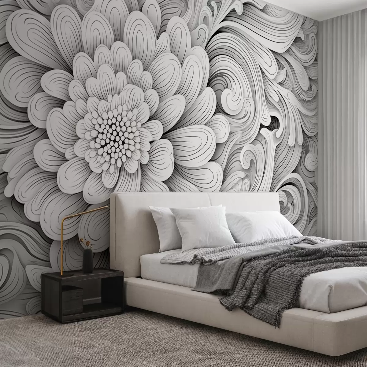Fotomurales Motivo decorativo en blanco y negro en forma de flor y remolinos Nr. w09355