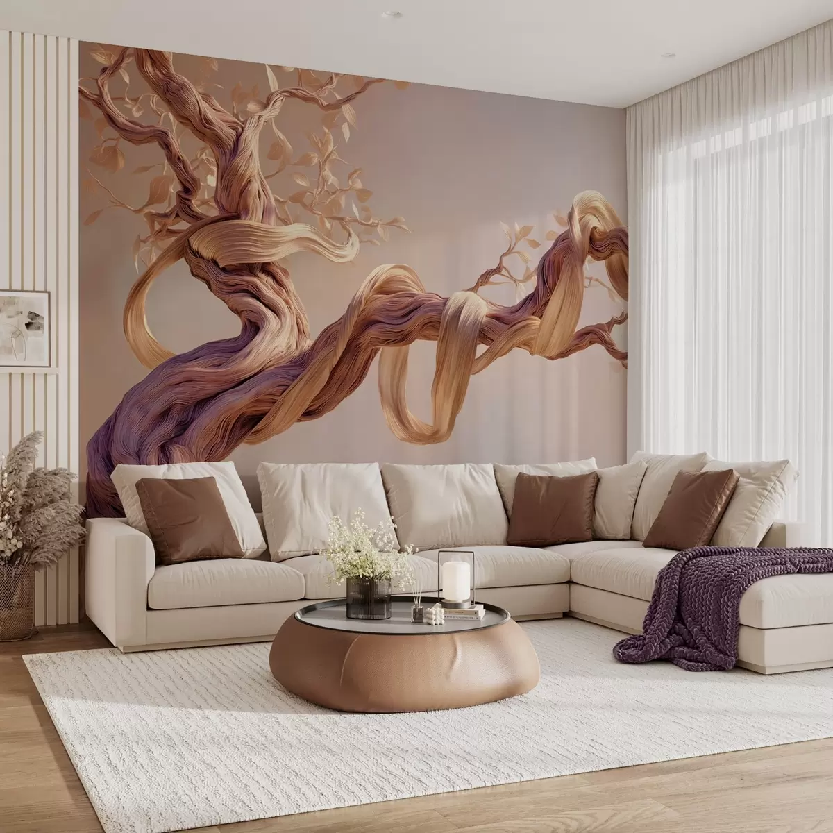 Fotomurales Tronco de árbol retorcido con hojas decorativas Nr. w09360