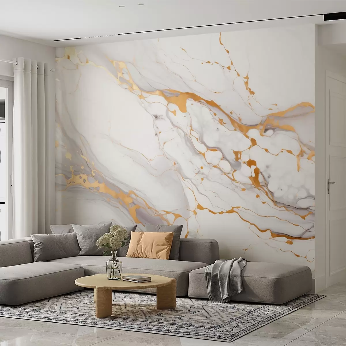 Fotomurales Imitación de textura de mármol con suaves transiciones grises y acentos amarillos Nr. w09362