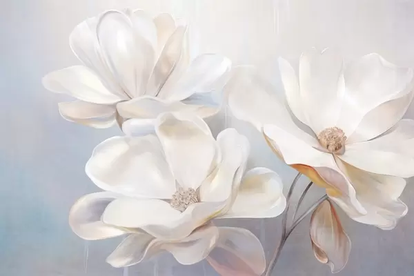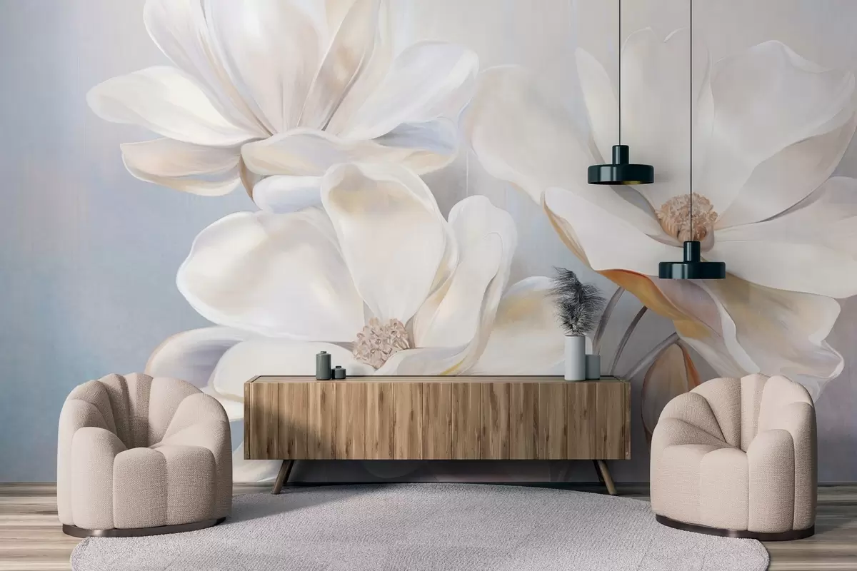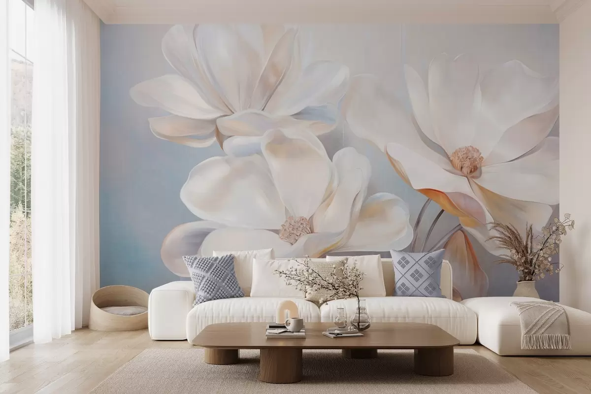 Fotomurales Flores blancas de magnolia fantásticas con pétalos de textura delicada, sobre un fondo suave y abstracto. Nr. w09373