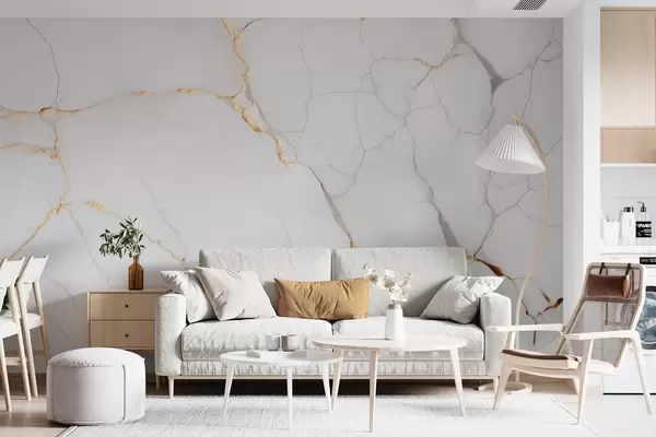 Fotomurales Imitación de mármol con finas grietas y vetas amarillas Nr. w09390