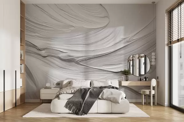 Fotomurales Imitaciones de pinceladas abstractas de pintura blanca con textura y un patrón en espiral, composición moderna minimalista y neutra Nr. w09394