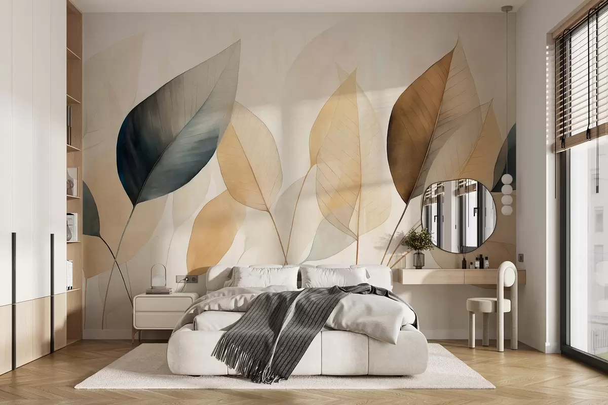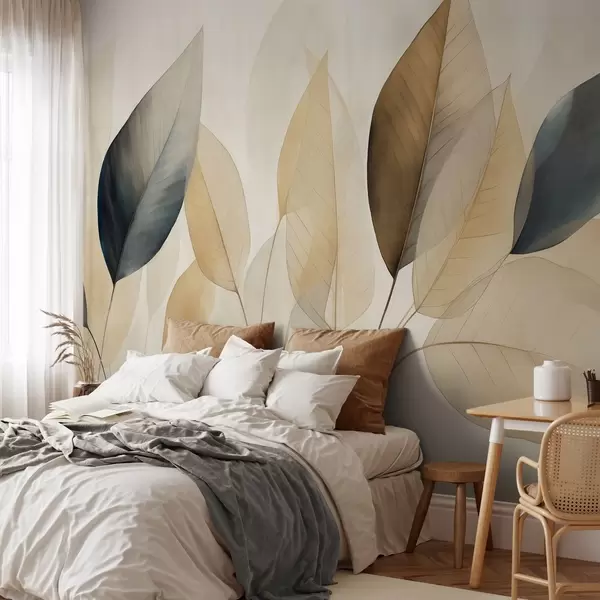Fotomurales Pintura texturizada imitación de hojas en tonos marrones, amarillos y grises, con delicadas venas y tallos Nr. w09400