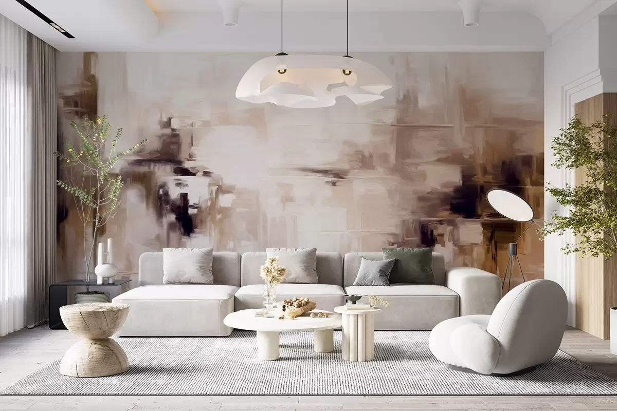 Fotomurales Imitación de pintura abstracta de paisaje con textura, con pinceladas marrones y blancas, estilo moderno Nr. w09422v1
