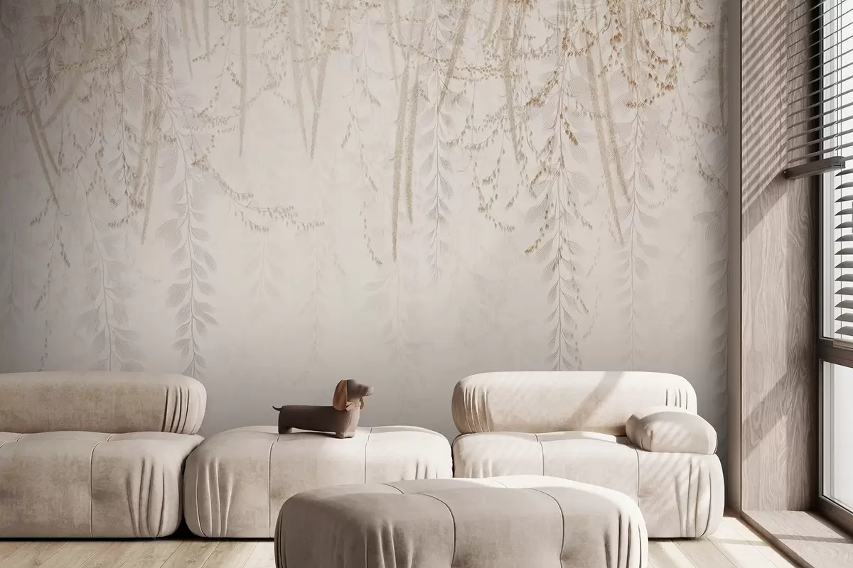 Fotomurales Hojas y ramas ligeras colgantes en tonos beige Nr. w09433