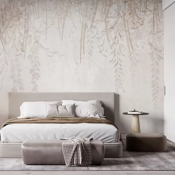 Fotomurales Hojas y ramas ligeras colgantes en tonos beige Nr. w09433