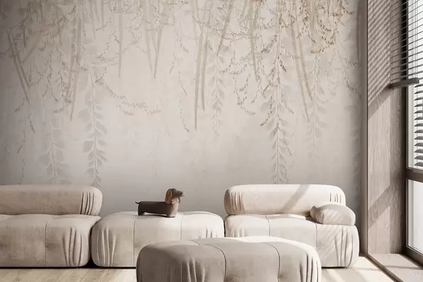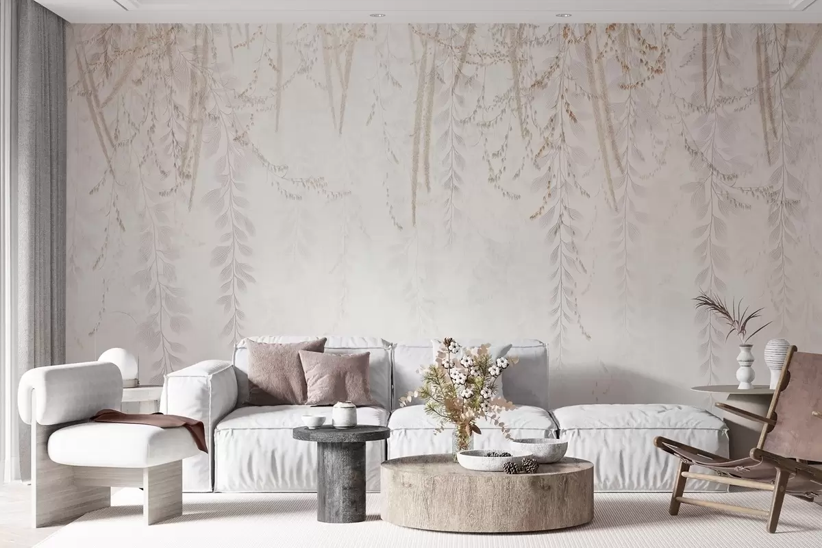Fotomurales Hojas y ramas ligeras colgantes en tonos beige Nr. w09433