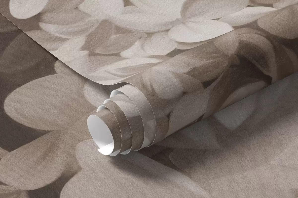 Fotomurales Pintura texturizada en sepia imitando flores de hortensias con hojas grandes, fondo abstracto y oscuro Nr. w09465