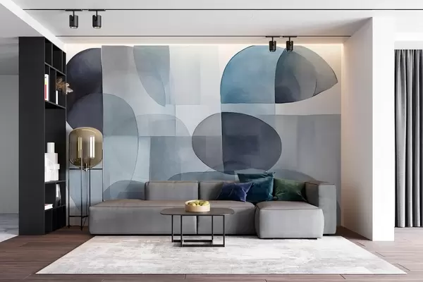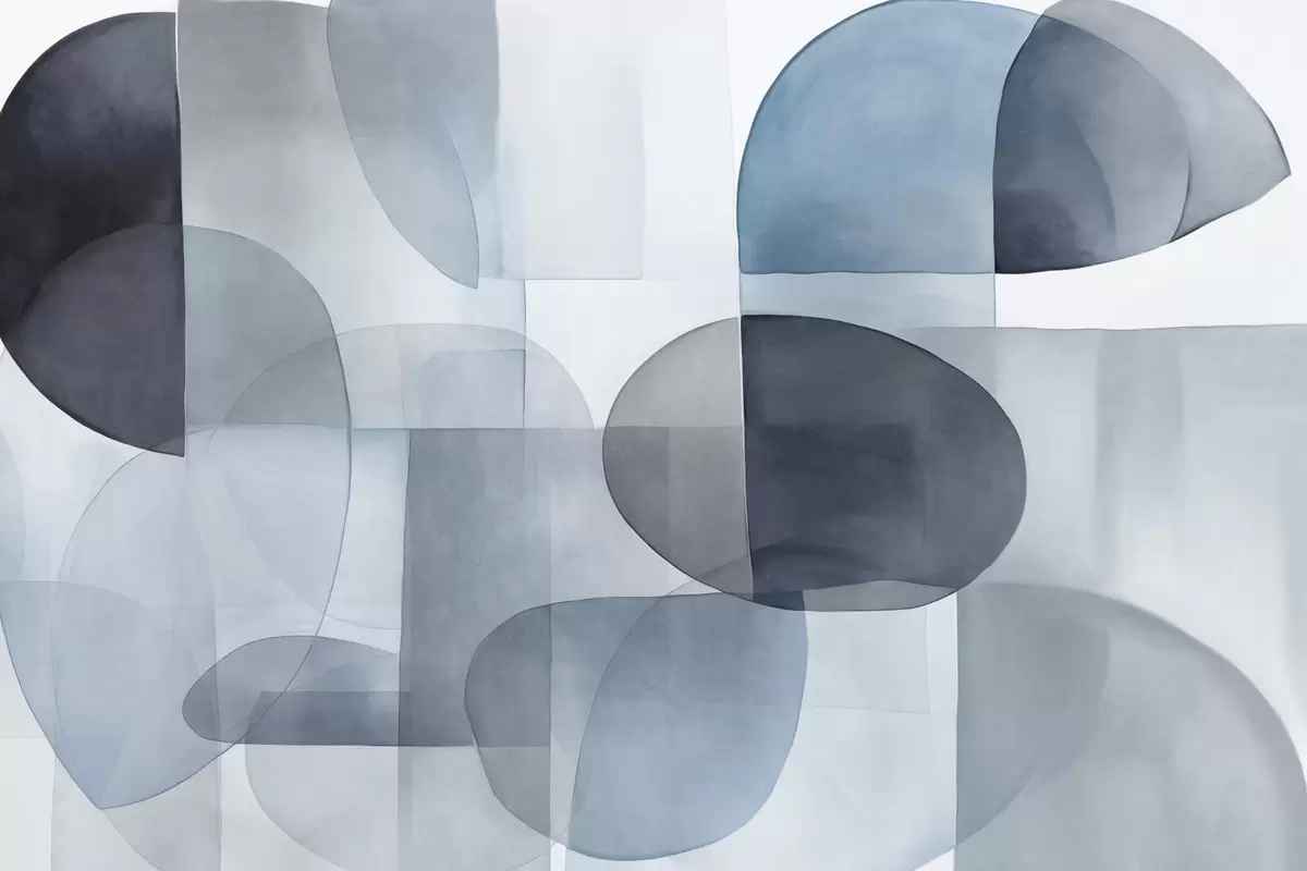 Fotomurales Formas abstractas con textura en tonos grises y azules, tonos apagados, composición minimalista, fondo neutro Nr. w09467v1