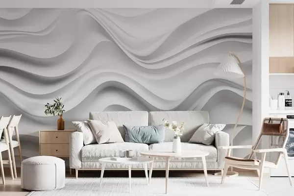 Fotomurales Composición abstracta en blanco y negro en 3D con ondas suaves Nr. w09506