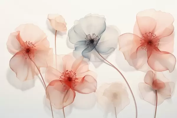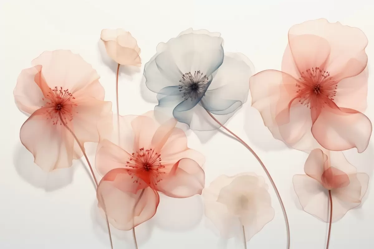 Fotomurales Flores translúcidas en tonos rojos y azules. Nr. w09515