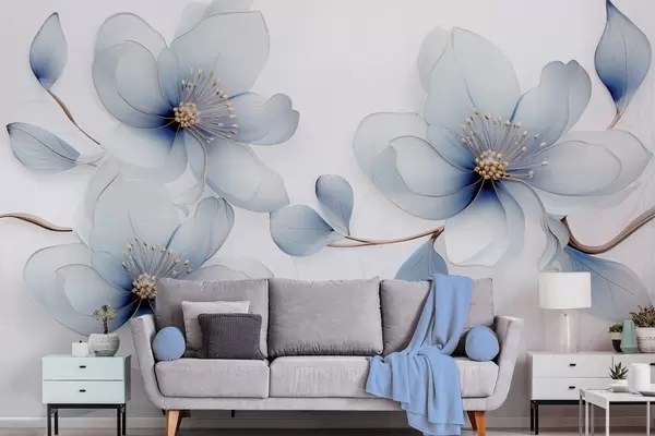 Fotomurales Elegante composición floral de magnolia en tonos azules Nr. w09520