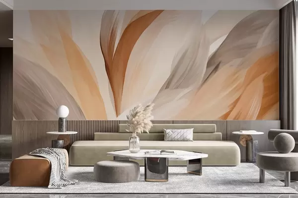Fotomurales Plumas abstractas con textura en marrón, blanco y gris y varios tonos, superpuestas sobre un fondo blanco Nr. w09531