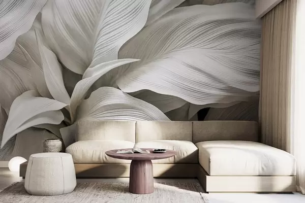 Fotomurales Hojas grandes, blancas y texturizadas, con nervaduras prominentes que se superponen y crean profundidad Nr. w09536