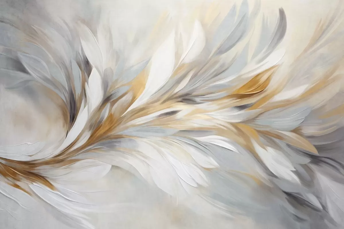 Fotomurales Estilo de pintura abstracta con pinceladas texturizadas en blanco, amarillo y gris sobre un fondo suave y claro. Nr. w09552