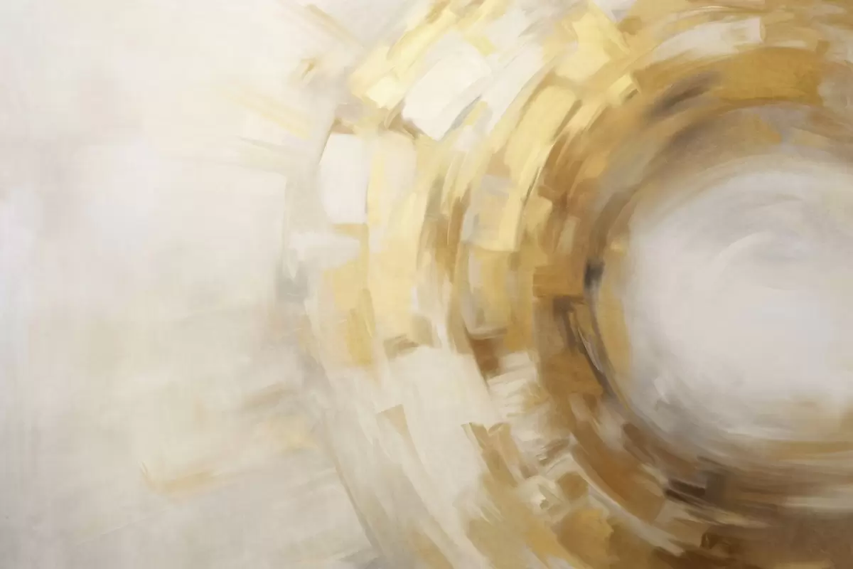 Fotomurales Imitación de pintura abstracta con pinceladas circulares texturizadas en amarillo y blanco, creando una sensación de movimiento. Nr. w09558