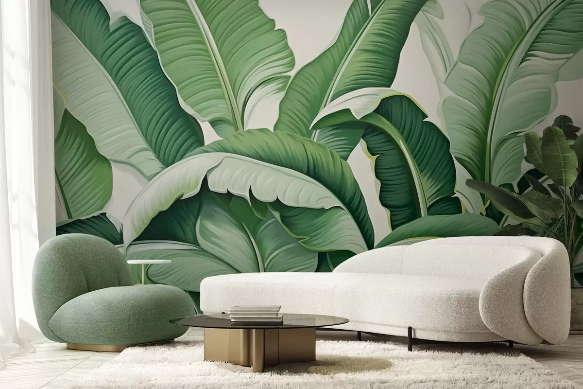 Fotomurales Hojas de plátano tropicales verdes con efecto 3D. Nr. w09559