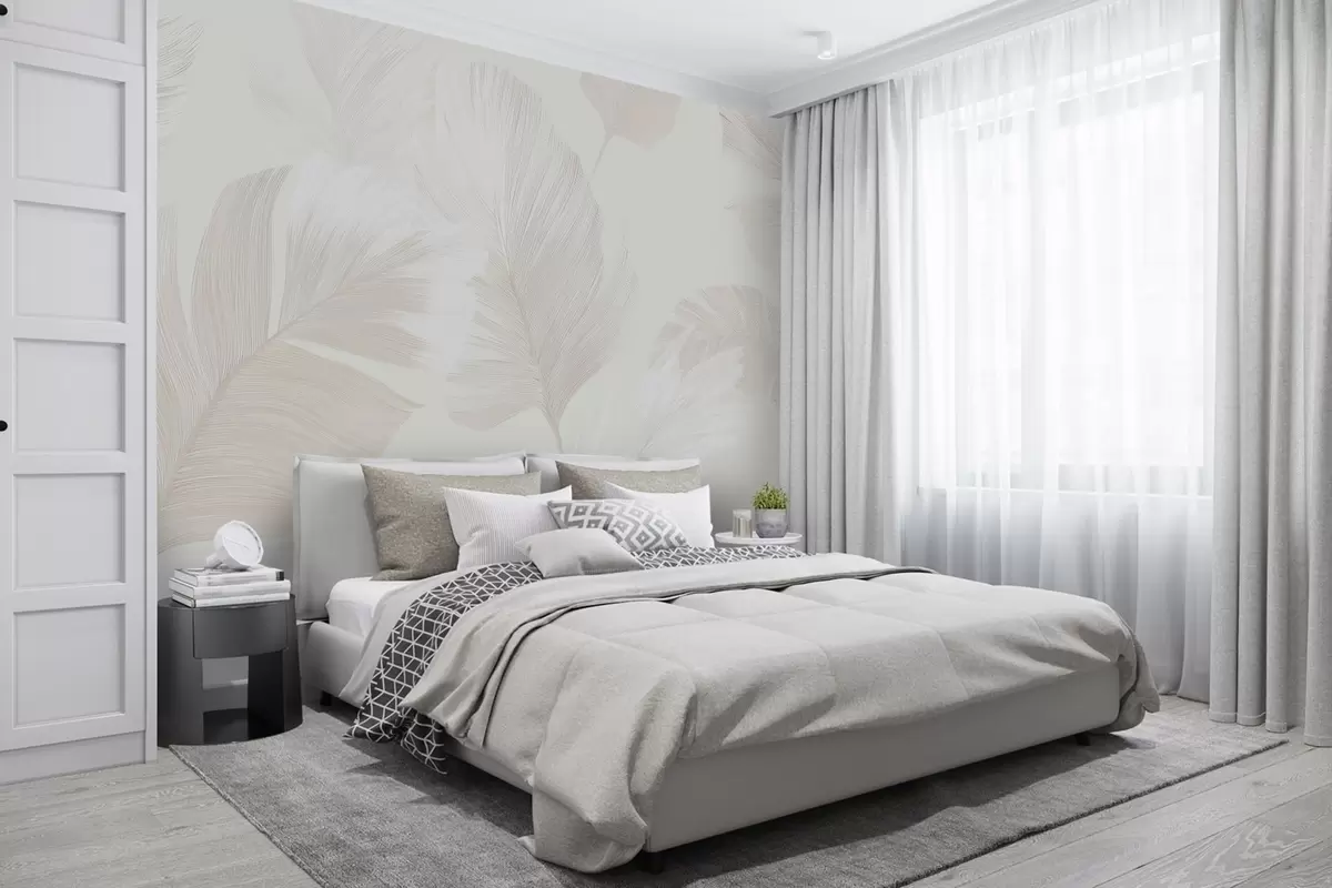 Fotomurales Suaves plumas de color marfil en tonos beige lechoso. Nr. w09563