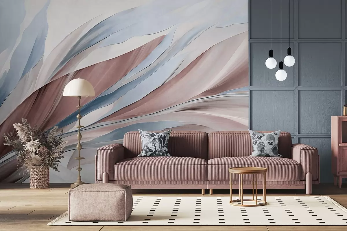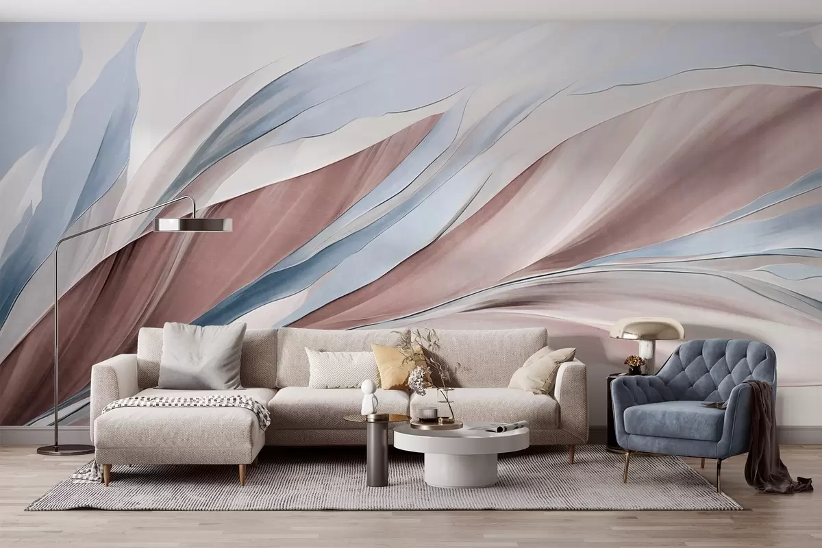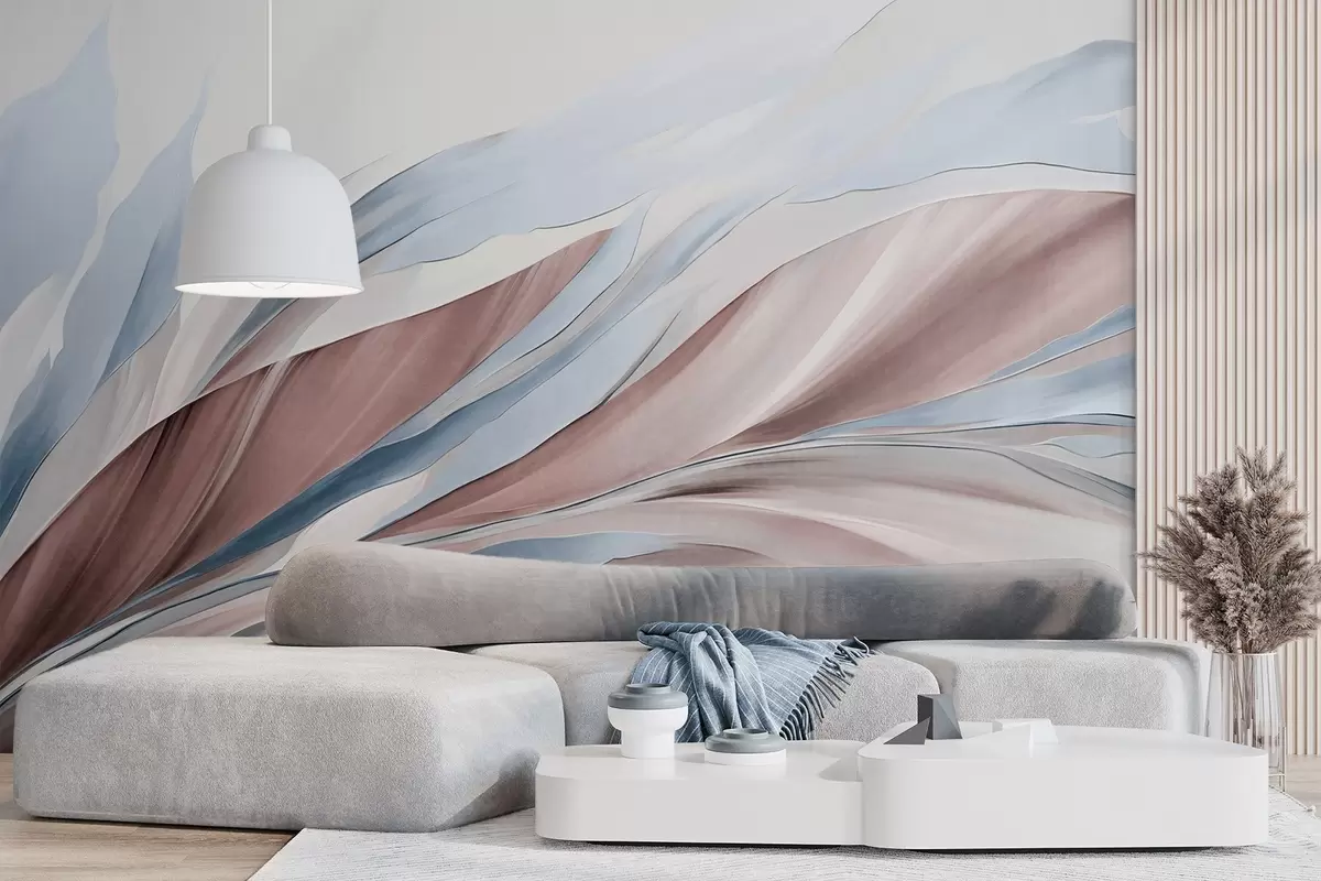 Fotomurales Ondas abstractas fluidas de color azul y marrón, con formas y líneas finas, sobre un fondo blanco, arte texturizado. Nr. w09585v1