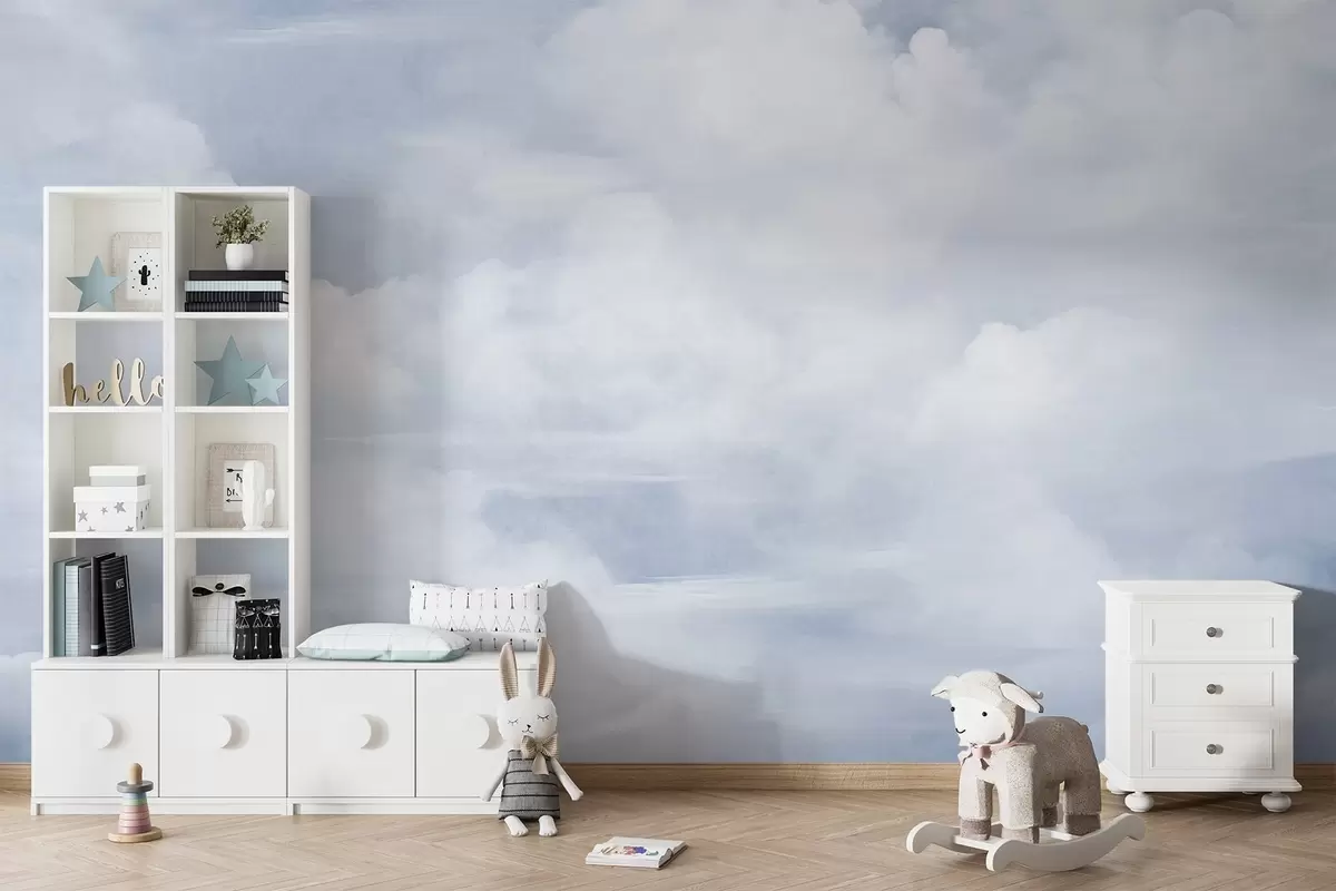 Fotomurales Cielo con textura pastel lleno de nubes blancas con una estética suave y minimalista. Nr. w09589