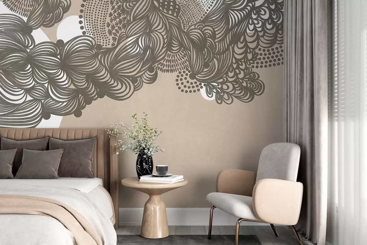 Fotomurales Diseño abstracto con textura sobre fondo beige, con líneas intrincadas y texturas punteadas. Nr. w09621