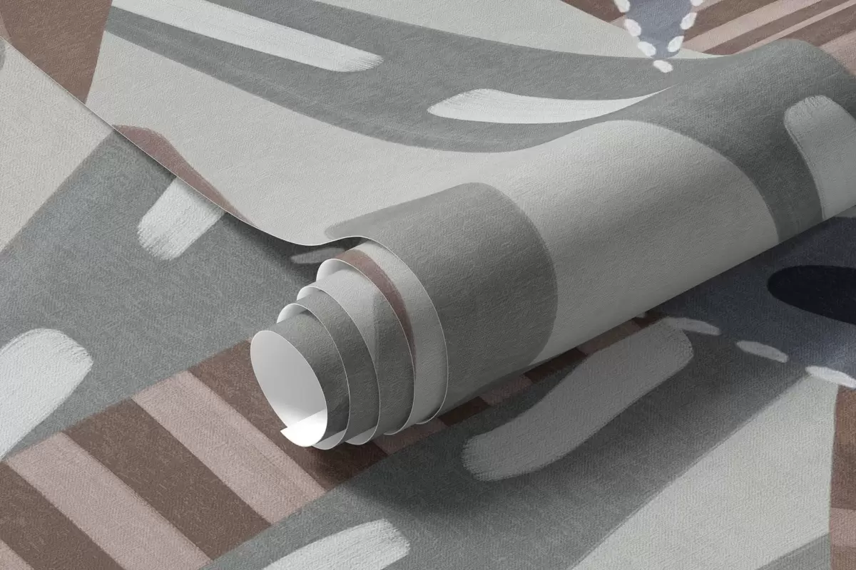 Fotomurales Plantas tropicales y palmeras con textura y colores apagados en estilo boho decorativo sobre un fondo gris. Nr. w09639v1
