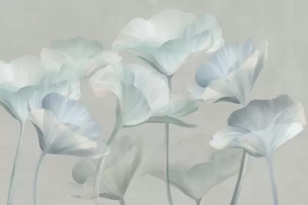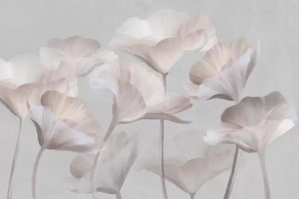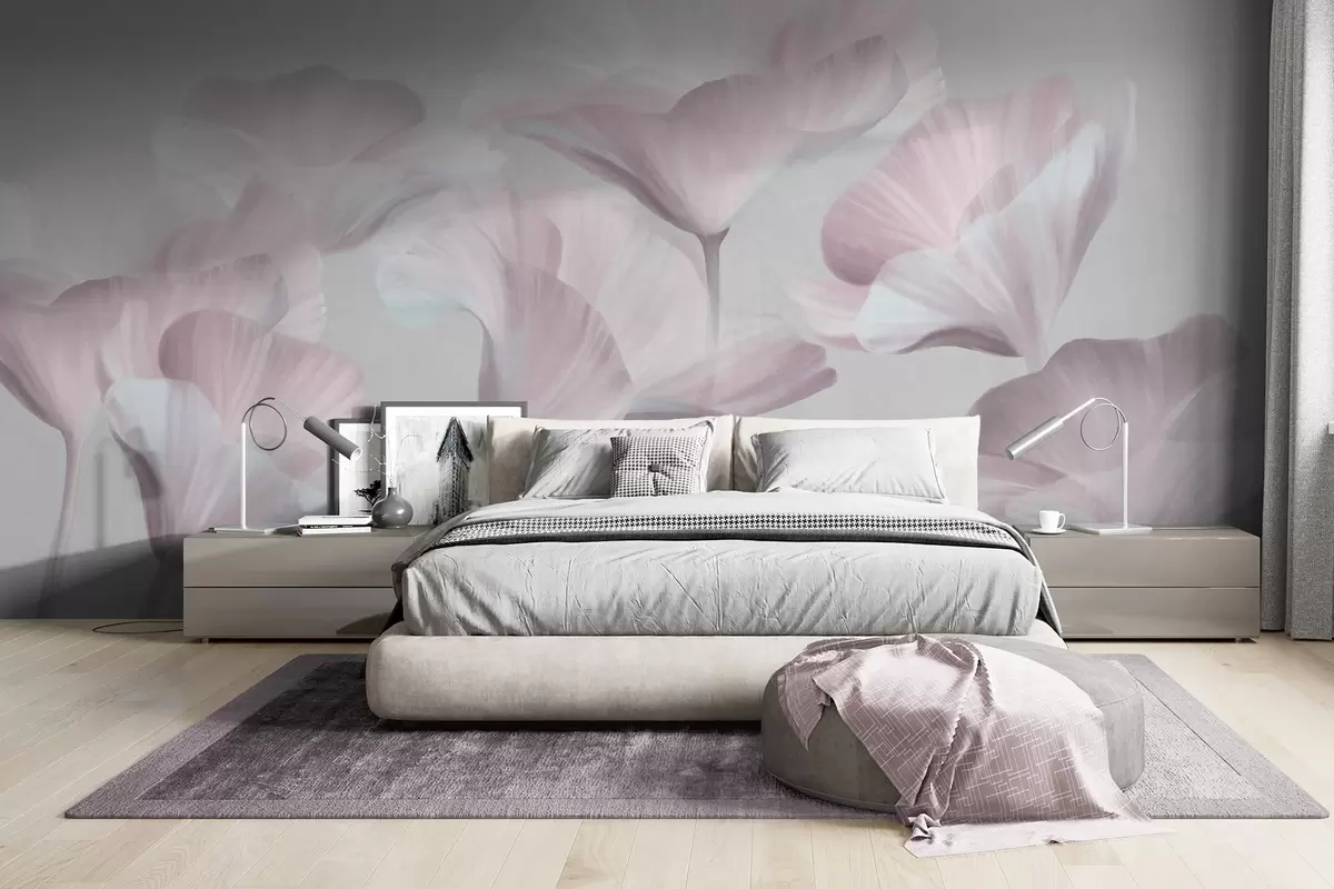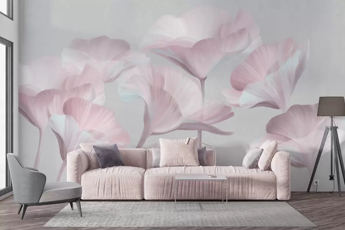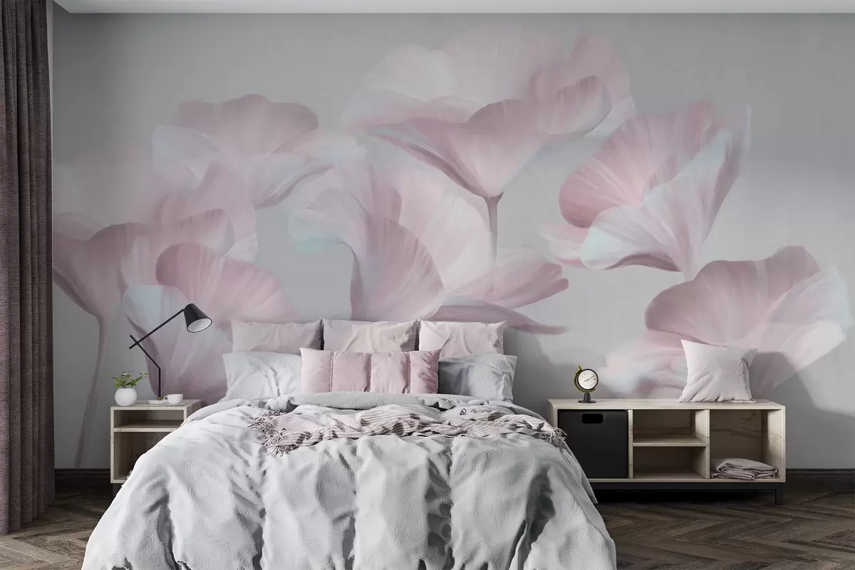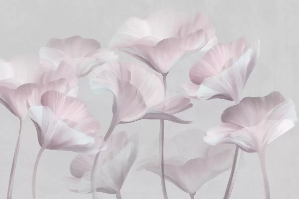 Fotomurales Flores de loto translúcidas de color rosa pálido con pétalos delicados sobre un fondo gris apagado. Nr. w09640v1
