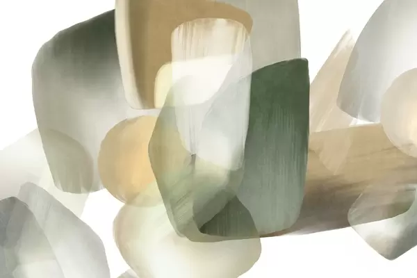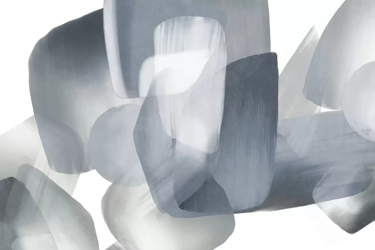 Fotomurales Formas abstractas con textura en colores azul y gris apagados, con bordes suaves y capas superpuestas. Nr. w09642v1
