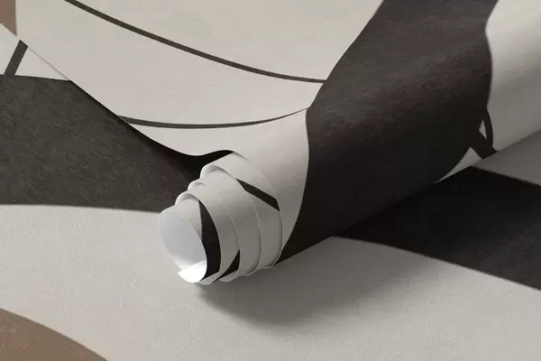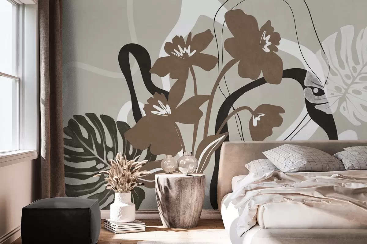 Fotomurales Flores marrones abstractas con textura y formas blancas y negras sobre fondo beige, arte minimalista. Nr. w09645v1