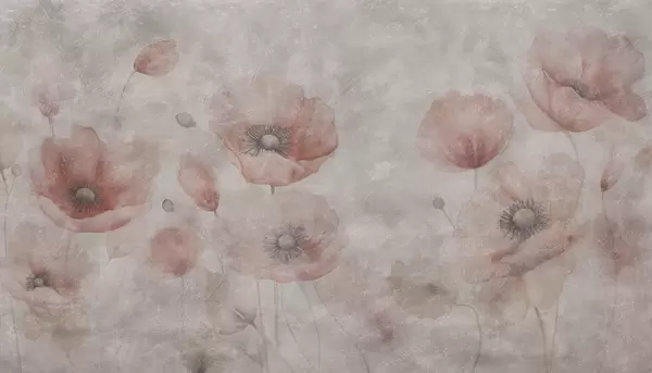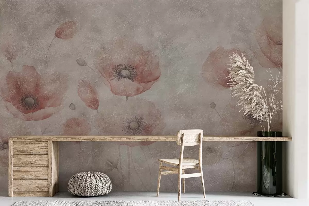 Fotomurales Grandes flores de amapola en una pared con efecto antiguo. Nr. w09686
