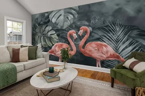 Fotomurales Una pareja de flamencos entre plantas tropicales. Nr. w09687