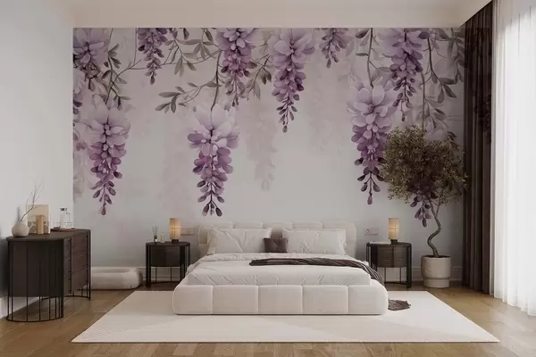 Fotomurales Delicadas ramas grandes de lavanda colgadas en la pared, imitación acuarela. Nr. w09690
