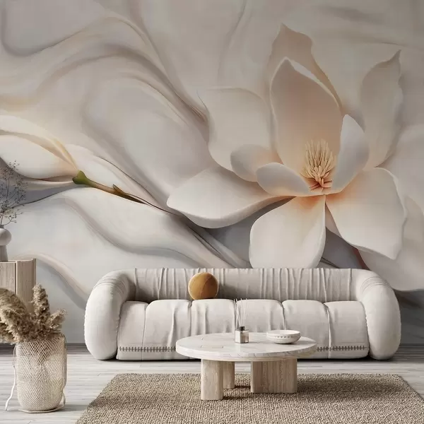 Fotomurales Magnolia blanca tridimensional con imitación de textura de mármol en relieve. Nr. w09729