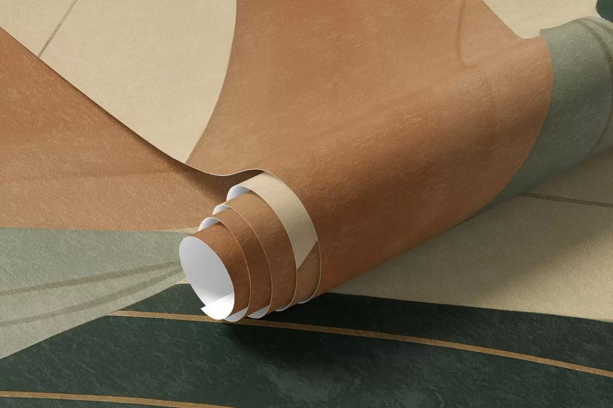 Fotomurales Hojas abstractas, tonos tierra apagados de verde y naranja con delicados detalles lineales, textura suave de acuarela. Nr. w09736