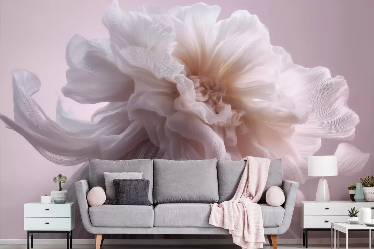 Fotomurales Flor de seda con volumen en tonos rosa pálido y beige Nr. w09809