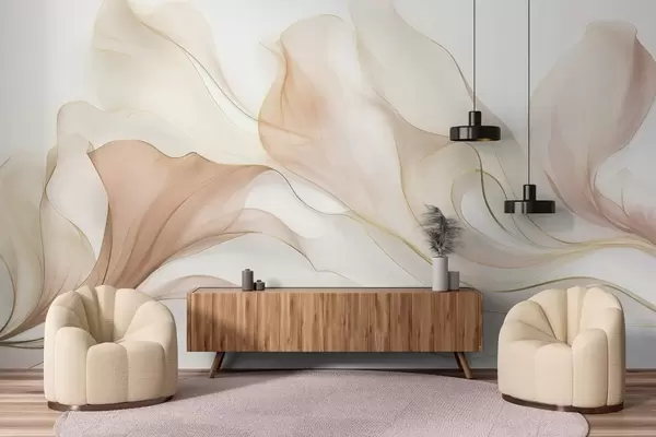 Fotomurales Textura fluida y abstracta en tonos melocotón y crema con líneas delicadas Nr. w09815