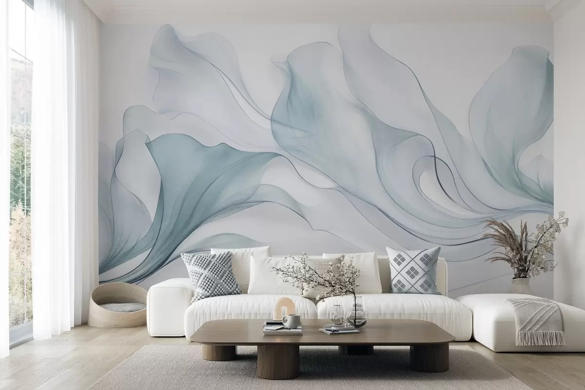 Fotomurales Textura abstracta y fluida en tonos azules con líneas delicadas Nr. w09815v1