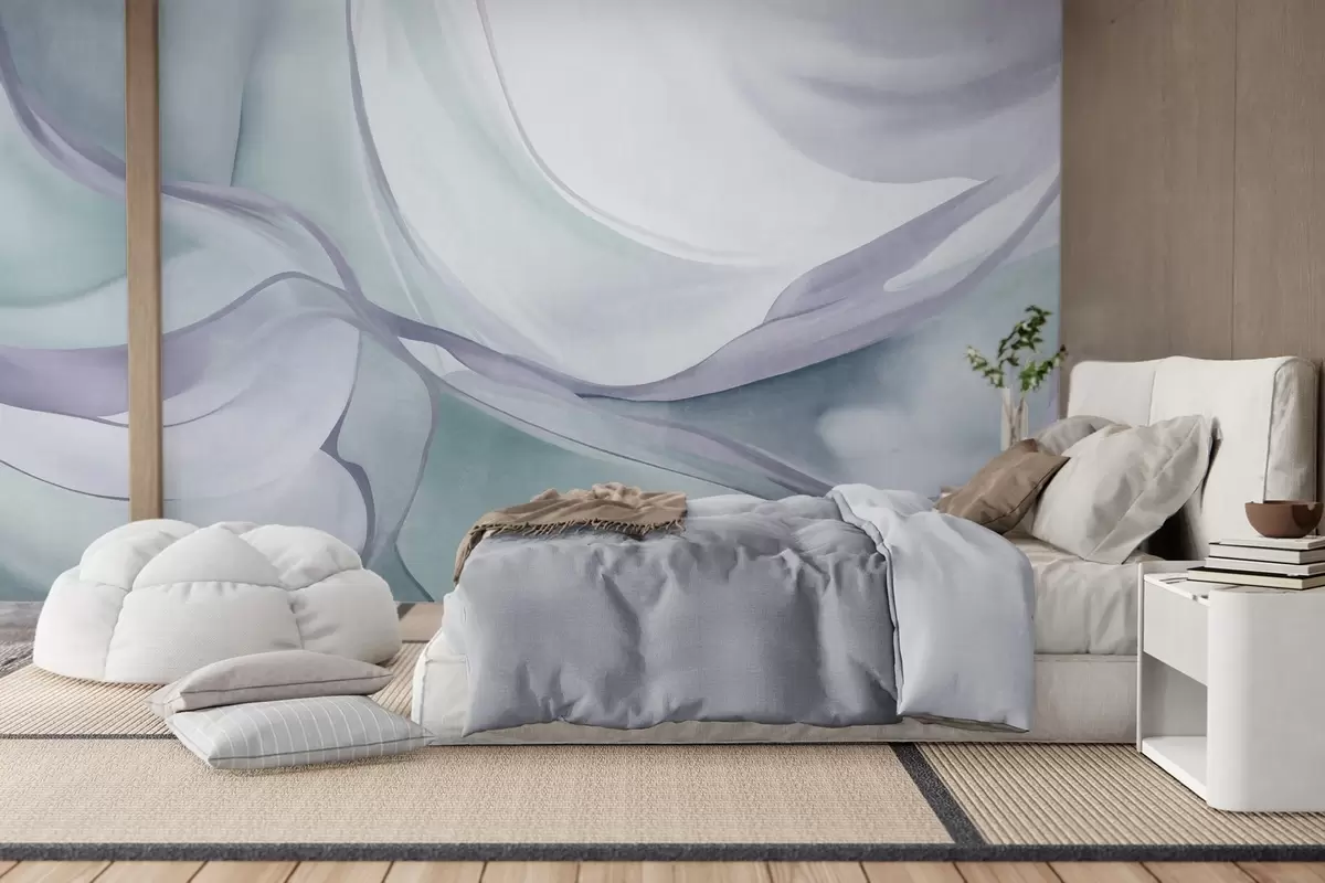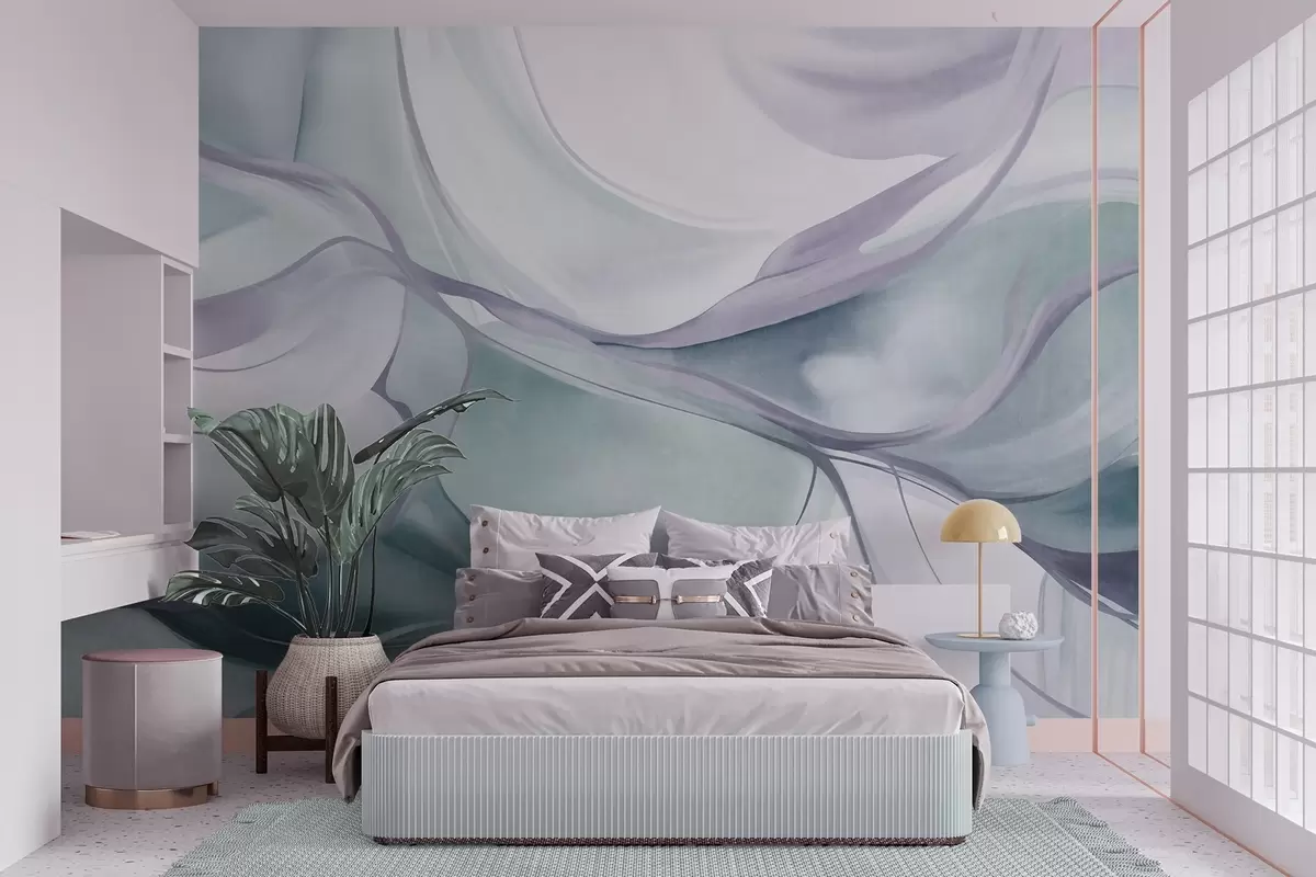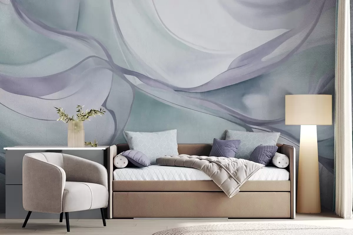 Fotomurales Formas fluidas con texturas abstractas en tonos azules y grises, con líneas delicadas Nr. w09818v1