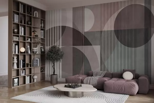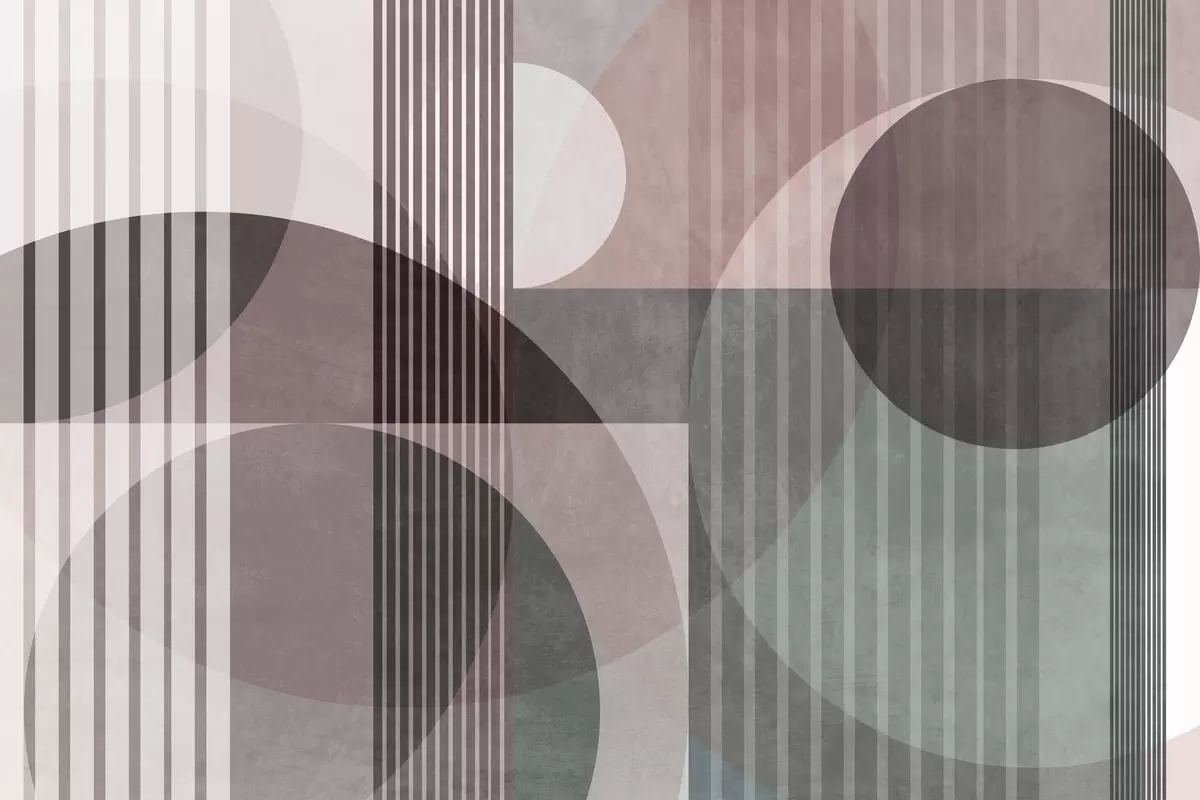 Fotomurales Formas geométricas abstractas con círculos y líneas, tonos apagados, textura y composición en capas Nr. w09834v1