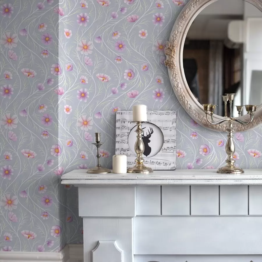Delicadas flores lilas sobre fondo rosa, ambiente primaveral